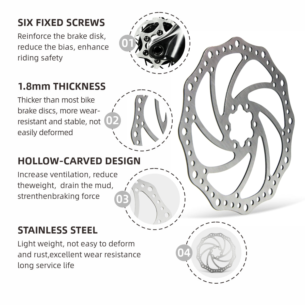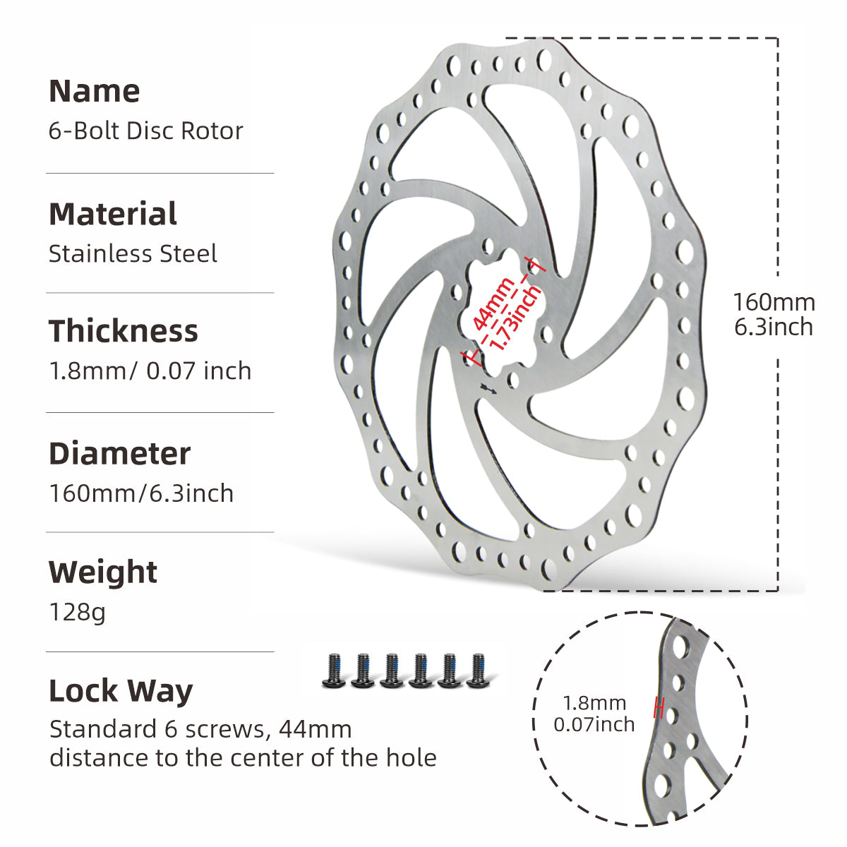 Star Union DP8 Disc Rotor – 1.8mm Stainless Steel 6-Bolt Brake Rotor (160 / 180 / 203mm)
